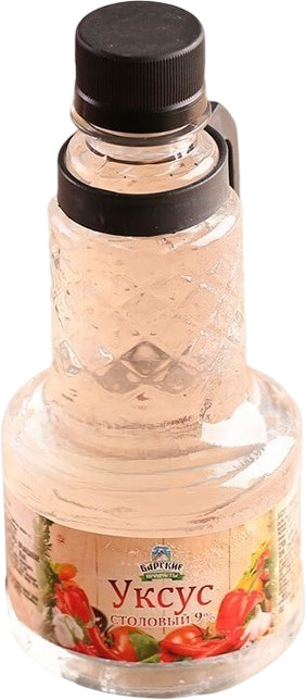 Барские продукты Уксус столовый 9%В данный момент этот товар отсутствует в продаже. Возможно, у нас найдется аналогичный или похожий товар здесь. Уксус столовый 9% — незаменимый продукт на любой кухне. Его универсальность и доступность делают его идеальным для приготовления разнообразных блюд, от салатов и маринадов до соусов и консервации. Сбалансированный вкус и оптимальная концентрация уксусной кислоты (9%) позволяют использовать его как в качестве приправы, так и для консервирования продуктов. Удобный объем 350 мл подойдет как для повседневного использования, так и для заготовок на зиму.  |