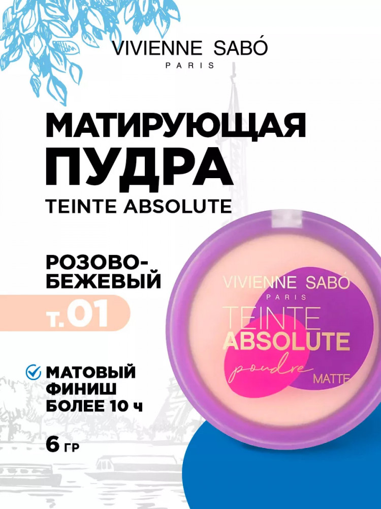 Vivienne Sabo Пудра для лица матирующая «Teinte absolute matte», оттенок 01 Розово-бежевый