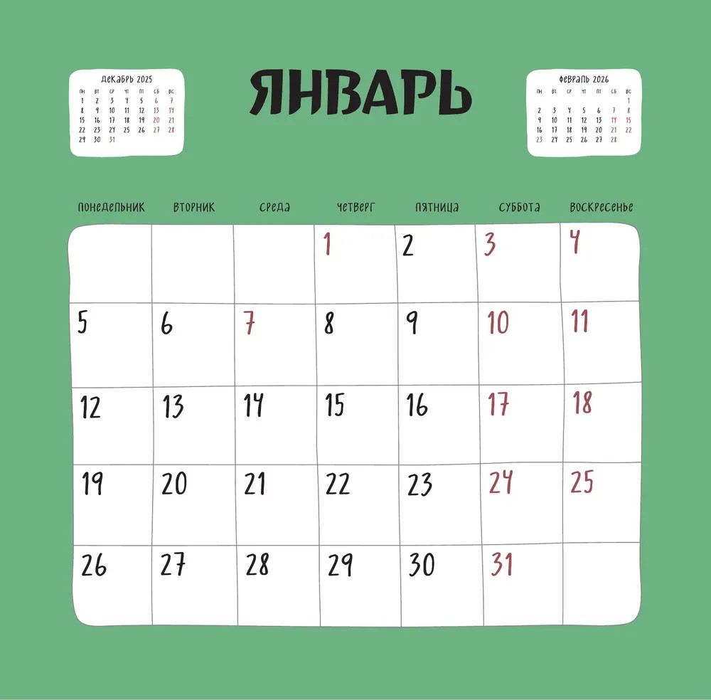 Серия: Календари настенные 2026 (300×300) Календарь настенный на 2026 год — это стильный и функциональный аксессуар, который органично дополнит ваш интерьер и поможет легко планировать важные события и моменты. Его четкий дизайн и удобный формат делают его незаменимым помощником в организации времени, добавляя пространству порядка и уюта. |