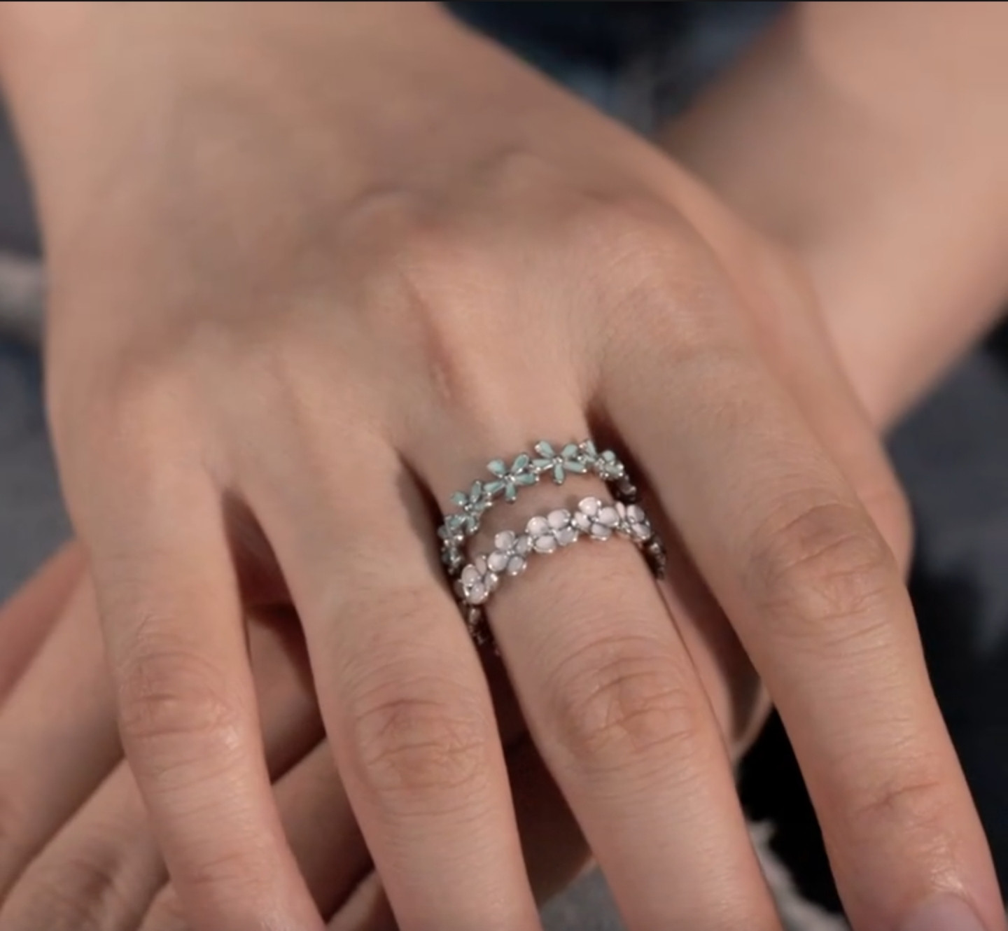 Bamoer Кольцо-дорожка «Голубые цветы»