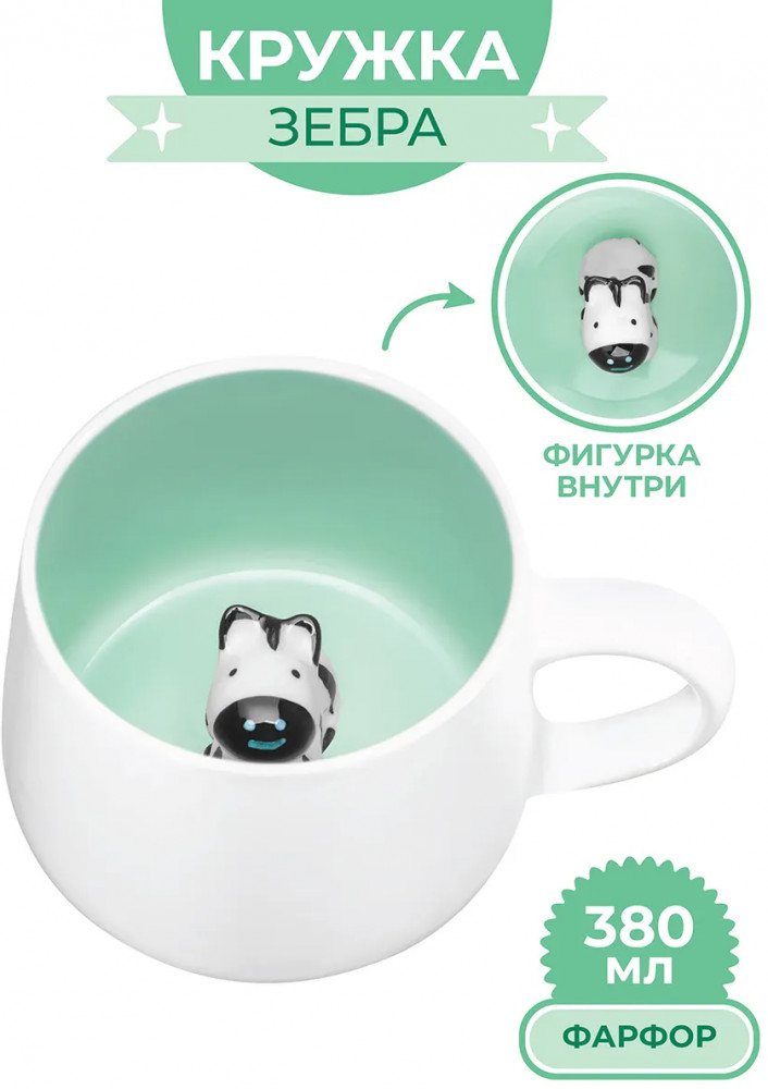 Elan Gallery Кружка с фигуркой внутри «Зебра»новинка -20%