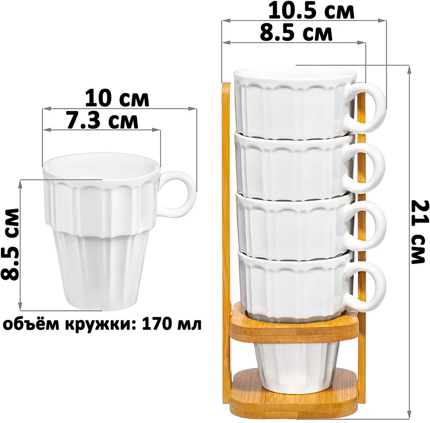 • кружка объёмом 170 мл. (10×7,3×8,5 см) — 4 шт.;