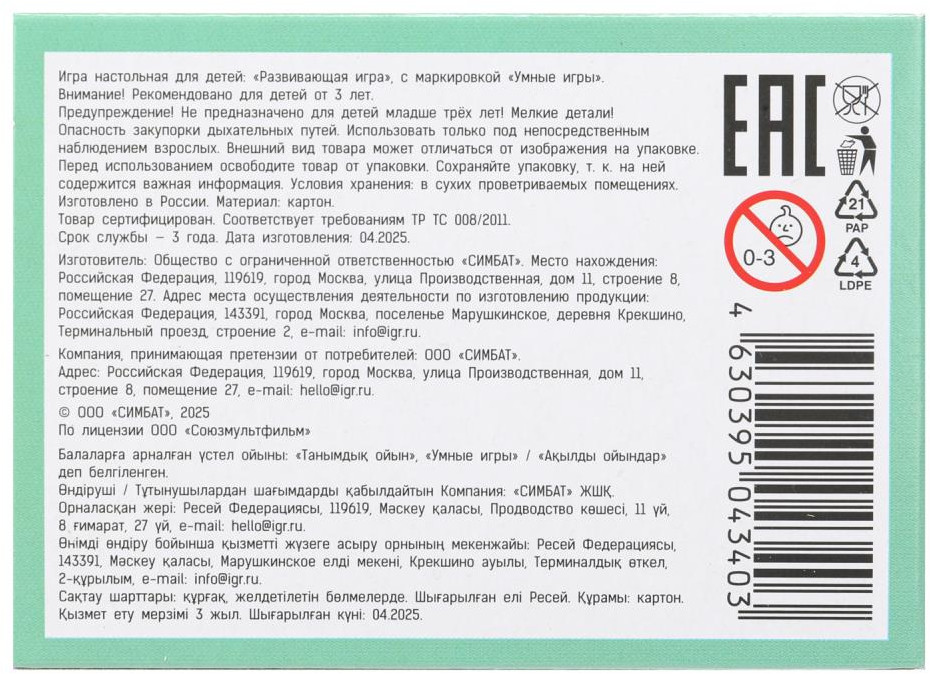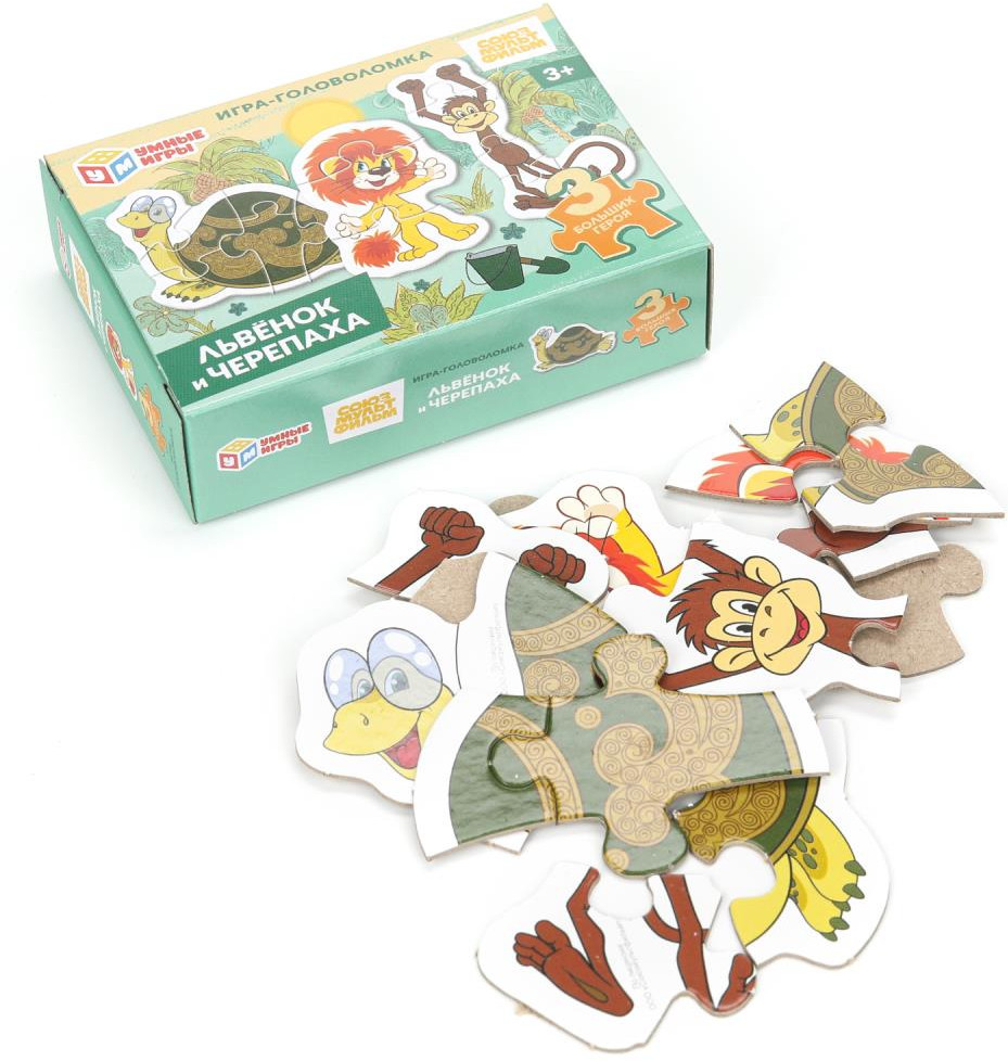Умные игры Макси-пазлы «Львёнок и Черепаха»В данный момент этот товар отсутствует в продаже. Возможно, у нас найдется аналогичный или похожий товар здесь. Серия: Союзмультфильм Игра-головоломка «Союзмультфильм. Львёнок и Черепаха» ТМ «Умные игры» — отличная развивающая игра для самых маленьких. Задача ребёнка — подобрать половинки пазлов из набора так, чтобы собрать картинки с изображением героев известного мультфильма студии «Союзмультфильм» — всего 3 варианта. Благодаря небольшому количеству деталей, малыш без труда сможет выполнить задание, с каждым разом делая это всё лучше и быстрее. |