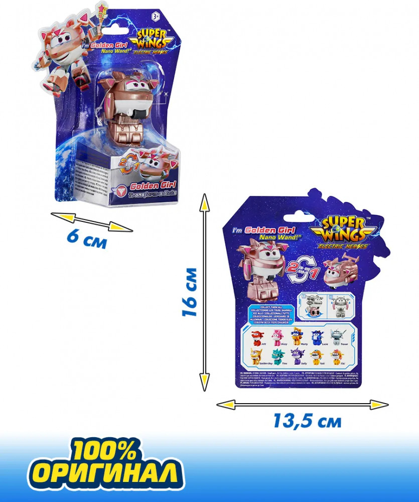 Погрузитесь в увлекательный мир воздушных приключений вместе с Мини роботом-трансформером Голден Гёрл — вашим персональным героем из мультфильма Супер Крылья! Эта яркая и энергичная игрушка обещает не только весело провести время, но и принести массу вдохновения вашему маленькому пилоту. Новый Мини-трансформер — новый герой 8 сезона мультфильма Супер Крылья. Голден Гёрл — юная розовая принцесса-самолетик — космическая путешественница с другой планеты с супер высоко технологичной палочкой, обладающей космической силой! Ее энергичное любопытство и сила нано-палочки создают неприятное комбо, которое становится постоянным источником раздражения для ее старшего брата Голден Боя! |