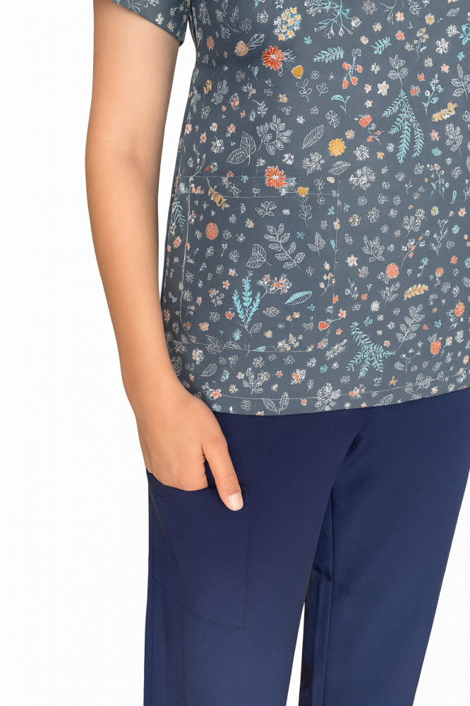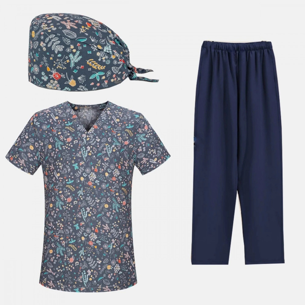 Современный женский медицинский костюм 3 в 1 (куртка, брюки и шапочка) — это удобный, практичный и стильный комплект, созданный для врачей, медсестер, стоматологов, косметологов, массажистов, мастеров маникюра и педикюра, а также сотрудников СПА и салонов красоты. Куртка из натурального хлопка дарит комфорт, дышащие свойства и приятные ощущения на коже, брюки из полиэстера сохраняют форму, не мнутся и выдерживают частые стирки, а шапочка завершает образ, обеспечивая гигиеничность и профессиональный вид. Женственный крой подчеркивает фигуру, куртка выполнена с V-образным вырезом, короткими рукавами и удобными карманами, брюки на резинке обеспечивают комфортную посадку и свободу движений. Оптимальное сочетание тканей (хлопок + полиэстер) делает костюм долговечным и практичным, а современный дизайн с актуальным принтом придает ему стильный вид. Такой комплект идеально подходит для длительной работы, сочетая в себе комфорт, износостойкость и универсальность в сфере медицины и бьюти-индустрии.
