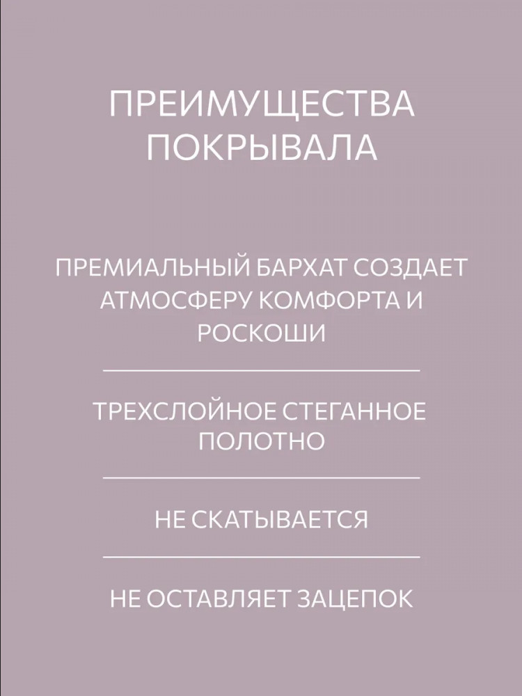 Комплект покрывала с наволочками от Guten Morgen станет прекрасным подарком для ваших близких. Универсальный набор прекрасно впишется в любой интерьер, а его высокое качество обеспечит долговечность и сохранение первоначального вида даже после множества стирок. Этот набор не только красив, но и практичен. Бархат отличается износостойкостью и лёгкостью в уходе, что делает его идеальным выбором для ежедневного использования. Кроме того, такой комплект — это отличный способ быстро и без усилий обновить интерьер спальни, придав ей новый, свежий вид.