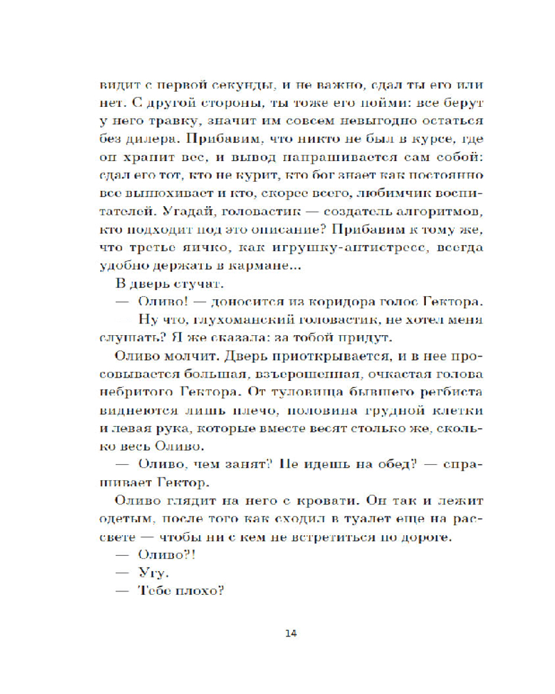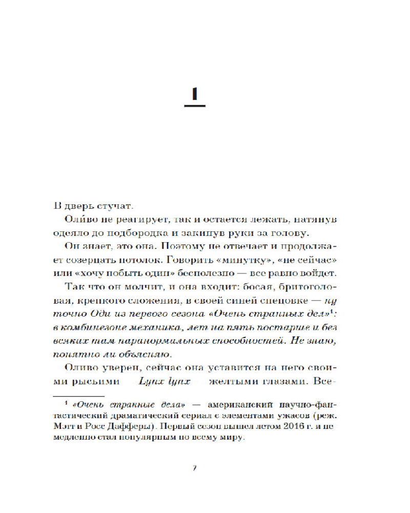 Шестнадцатилетний Оливо Деперо живет в приюте для трудных подростков и поменял уже несколько домов с тех пор, как лишился родителей в ужасной аварии. Он любит книги, ненавидит грамматические ошибки, всегда носит определенную одежду и произносит максимум шестьсот слов в день — вполне достаточно для общения с миром! А еще Оливо обладает незаурядным интеллектом и пользуется им, чтобы запоминать информацию за секунду, строить логические цепочки и делать единственно верные выводы, а самое главное — видеть то, чего никто другой не видит.