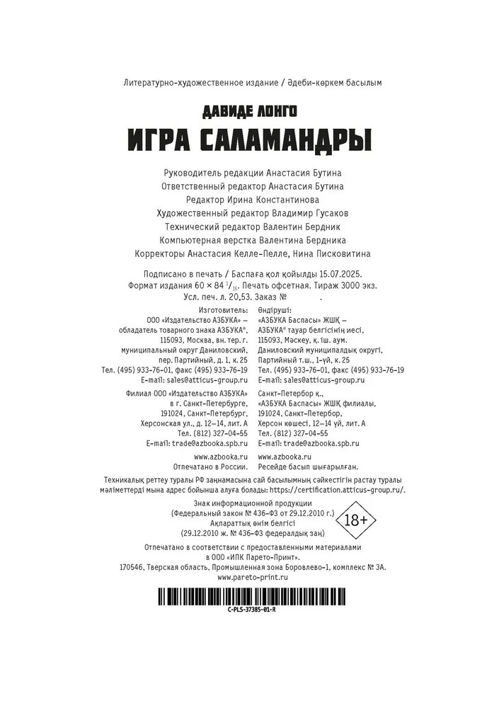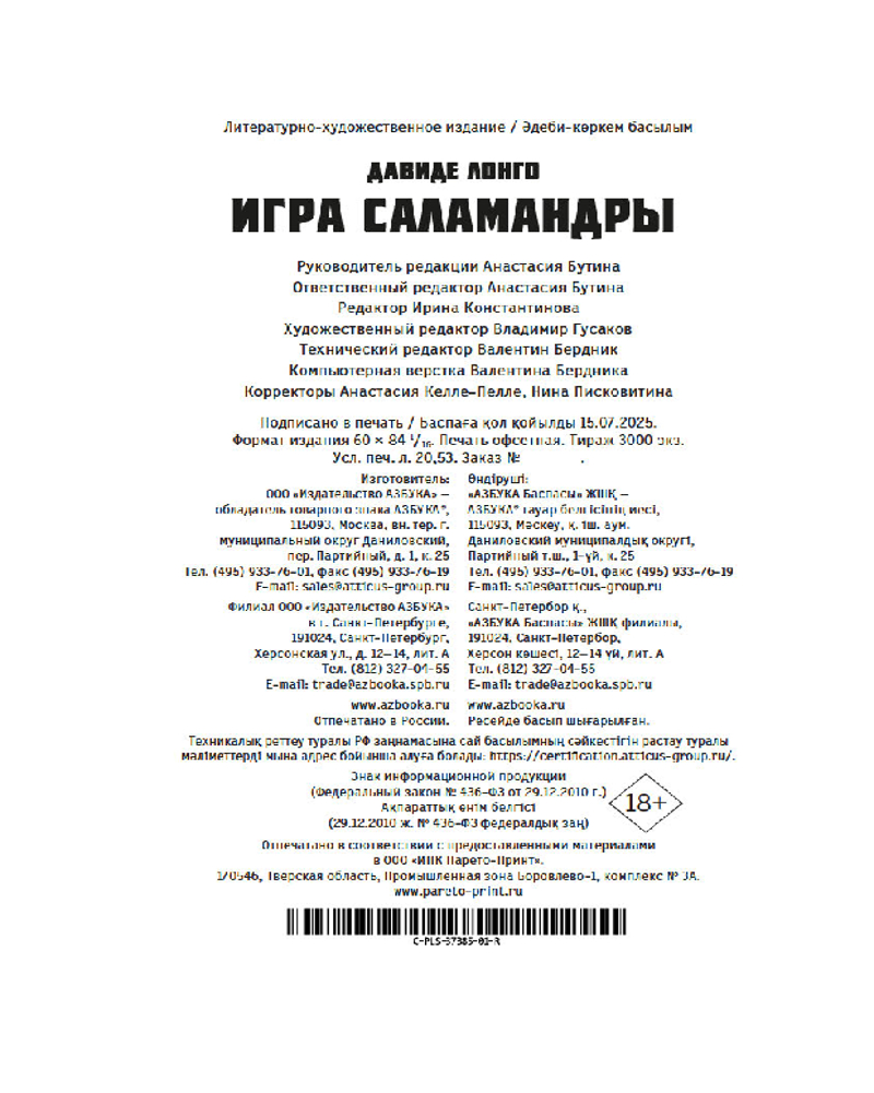 Ведущий литературный бренд, который предлагает разнообразную и увлекательную литературу для читателей всех возрастов. «Азбука» выпускает литературные произведения различных жанров и тематик — от детской литературы до классических произведений, от приключенческих романов до научно-популярных трудов. В издательстве уделяют особое внимание тщательной редакции и качественной печати каждой книги. Высококачественная бумага, четкая печать и прочный переплет делают книги «Азбуки» удовольствием...
