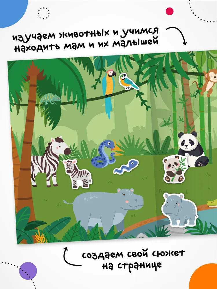 Серия: Веселые наклейки «Мамы и малыши» серии «Веселые наклейки» — это увлекательная книжка для детей, которая поможет малышам самостоятельно, без помощи родителей, весело провести время и развить важные навыки. Яркие наклейки для детей подходят как для первого знакомства с наклейками, так и для малышей постарше, а интересные задания на поиск мам для детенышей способствуют развитию словарного запаса, фантазии, памяти и творческого мышления. Эта замечательная книжка для малышей станет любимой развивающей книжкой для мальчиков и девочек, помогая им весело и с пользой проводить время в игровой форме. |