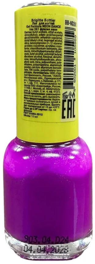 Brigitte Bottier Лак для ногтей «Neon Dance», оттенок 261 Фуксия неон