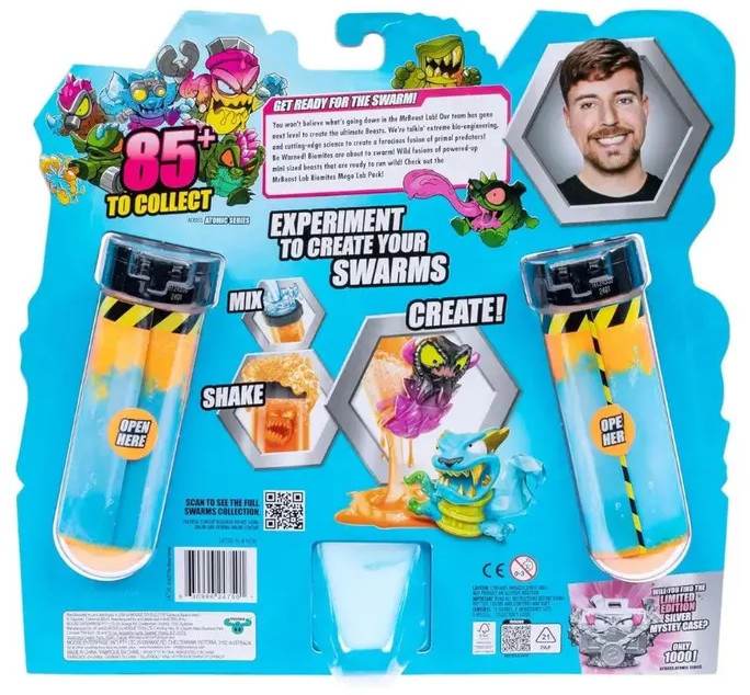 Присоединяйтесь к игрушкам MrBeast в этом захватывающем приключении и возьмите под контроль хаос с набором MrBeast Lab Swarms Mega Lab 12 Pack. Это не просто коллекционирование, а создание зрелищного экспериента при каждом открытии. Готовы ли вы вести свои Swarms к победе? Заполучите свой Mega Lab Pack сегодня и погрузитесь в мир интерактивной и приключенческой игры!