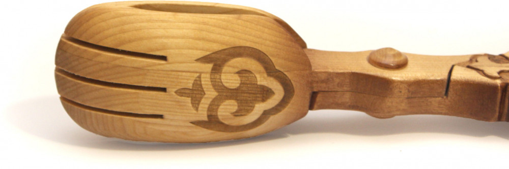 Щипцы «Кайнар» стандарт — стильный и практичный аксессуар для подачи мяса или теста, незаменимый при сервировке бешбармака. Изготовлены вручную из прочной берёзы. Ручки тонированы в глубокий коричневый цвет, украшены резными орнаментами и покрыты четырёхслойным защитным лаком, который надёжно сохраняет древесину и подчёркивает красоту резьбы. Захватывающая часть щипцов, соприкасающаяся с пищей, не покрыта лаком и красящими материалами, а обработана только натуральным растительным маслом, что делает изделие полностью безопасным для еды. |
