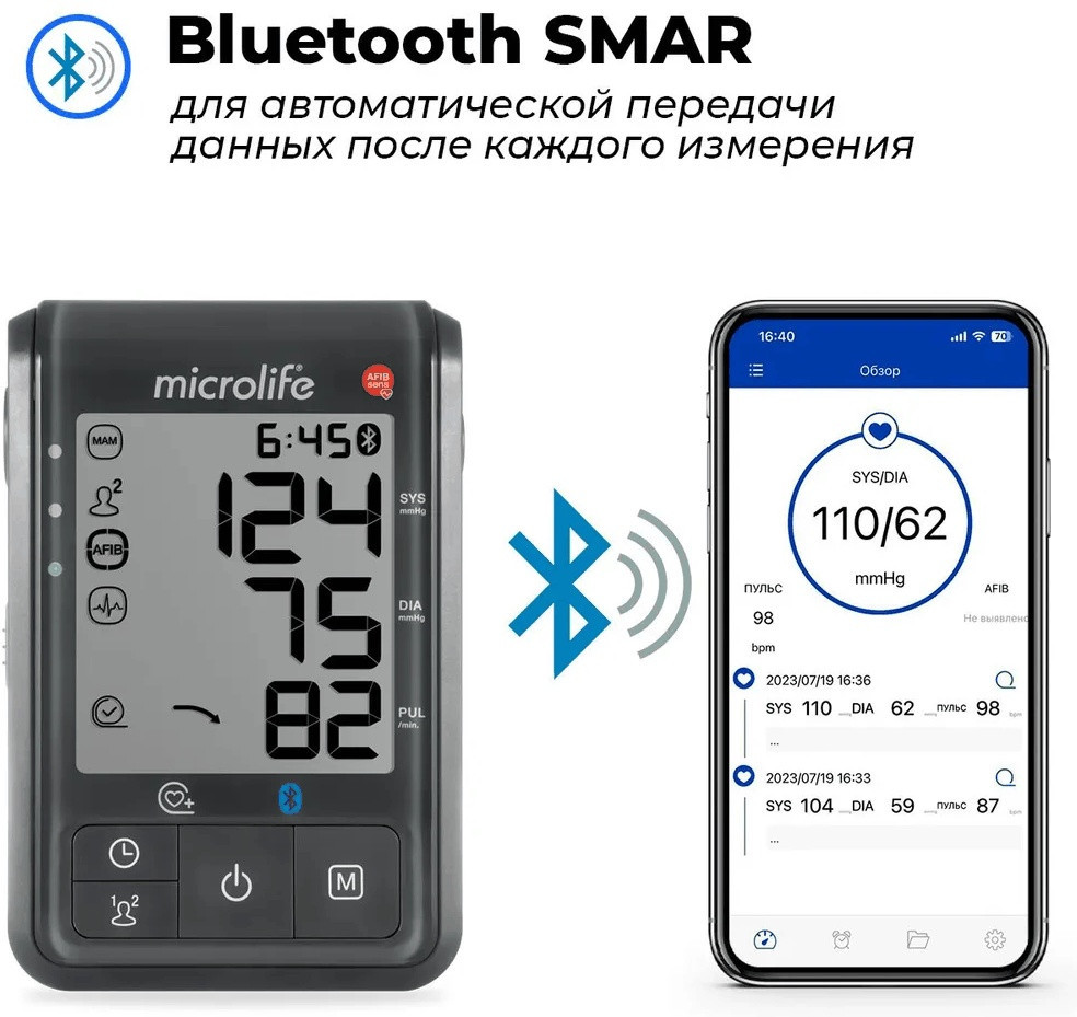 Microlife BP B6 Connect — это современный тонометр премиум-класса, созданный для точного и комфортного контроля артериального давления и пульса в домашних условиях. Устройство оснащено инновационной технологией AFIB, которая позволяет выявлять мерцательную аритмию (фибрилляцию предсердий) во время измерения — важнейший фактор для профилактики инсульта. Клинически протестирован на более чем 10 000 пациентов и рекомендован для регулярного применения людьми с сердечно-сосудистыми заболеваниями. |