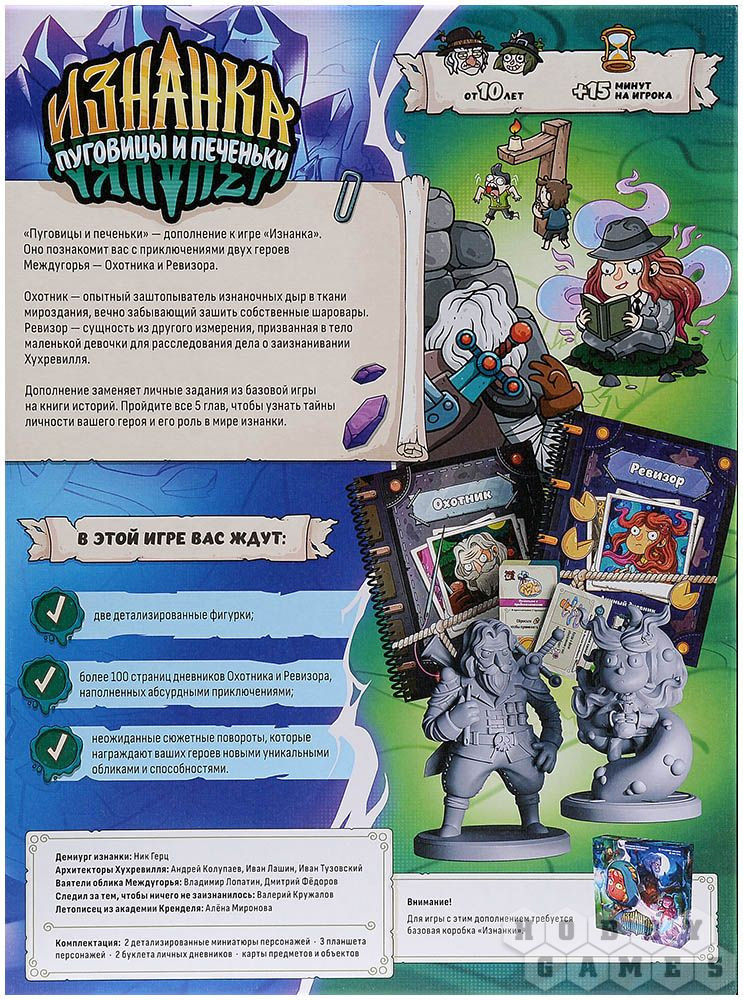«Изнанка: Пуговицы и печеньки» — дополнение к игре «Изнанка», раскрывающее истории двух новых героев. Вместо личных заданий базовой игры вас ждут книги историй: пять глав, полных неожиданных событий, абсурда и глубоких тайн. Каждый выбор открывает новые способности и облики персонажей, а увлекательные записи из дневников Охотника и Ревизора помогут приблизиться к разгадке природы изнанки. Внимание! Это дополнение. Для игры вам понадобится базовая версия «Изнанка». |