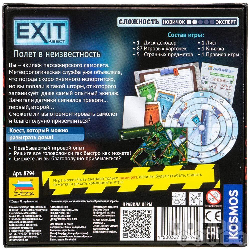 Серия: Exit-квест Серия игр «EXIT-Квест» основана на популярном жанре приключенческих квестов в реальности. Решив серию увлекательных и необычных загадок, вы сможете найти выход из опасной ситуации. Внутри каждой коробки вас ожидает незабываемая история и уникальное приключение для весёлой компании, обожающей логические задачки. |