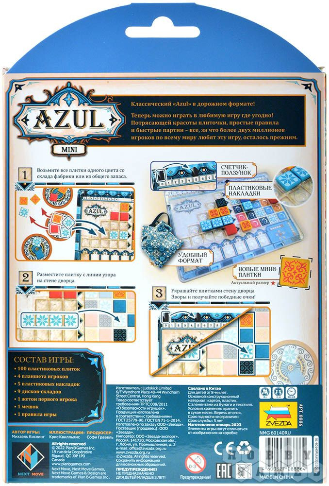 Серия: Азул Перед вами уже знакомый многим классический «Азул» но в компактном исполнении. Теперь у вас есть возможность взять любимую игру с собой и разложить её где вам захочется! В составе этой коробки всё то, за что многие полюбили эту игру: красивые плиточки, простые правила, такой же простой, но глубокий игровой процесс, а также быстрые партии. Но что делает эту игру по-настоящему новой, так это продуманные решения: диски теперь находятся в специальной подставке из пластика, предотвращающей падение плиток, а на игровые планшеты добавлены защитные накладки. У плиток появились небольшие выемки для большего удобства, а в мешочек с ручками без труда помещаются все игровые компоненты — вам больше не надо таскать с собой коробку! |