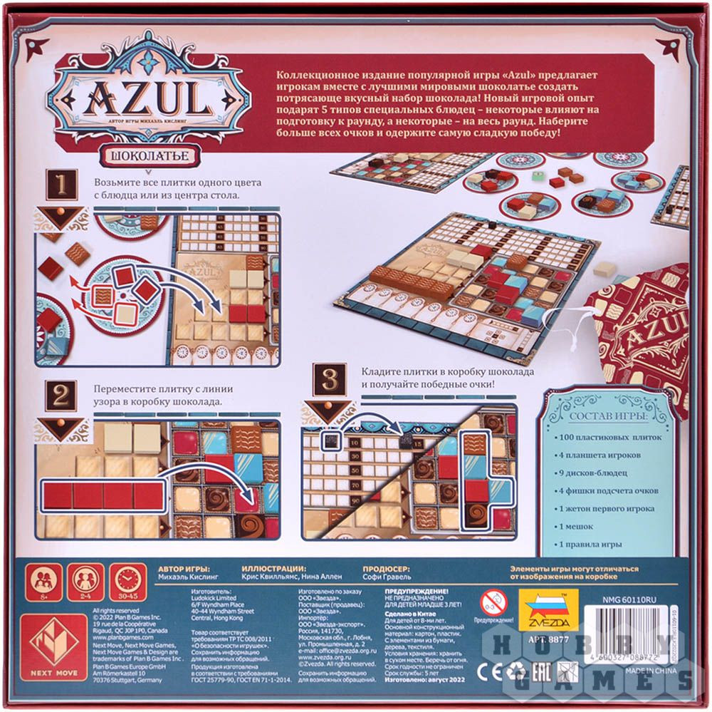 Звезда Игра настольная «Шоколатье»новинка В данный момент этот товар отсутствует в продаже. Возможно, у нас найдется аналогичный или похожий товар здесь. Серия: Азул «Азул: Шоколатье» — это уже пятая игра в серии, если считать её среди самостоятельных «коробок». На самом же деле это специальное издание с теми же самыми правилами и игровым процессом, которые полюбились игрокам самого первого «Азула». Но помимо изменённого дизайна в игре появились специальные диски-блюдца, обладающие своими особыми эффектами, которые способны повлиять как на подготовку к игре, так и на всю партию в целом. |