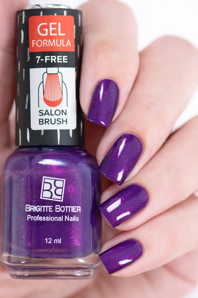 Brigitte Bottier Лак для ногтей с золотистым шиммером «Gel formula», оттенок 98 Фиолетовый