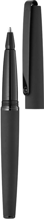 Металлическая ручка-роллер с матовым лакированным корпусом, длинным гибким металлическим клипом, декоративным кольцом и заглушкой с глянцевой отделкой в черном цвете. Рифленая зона захвата с глянцевой отделкой черного цвета. Европейский стержень с наконечником из нержавеющей стали и вольфрамово-карбидным шариком (0.7 мм). Длина письма: примерно 800 м. Немецкие чернила. Произведено в Германии. Стержни для шариковых ручек Uma не высыхают даже при снятом колпачке. Именно поэтому мы подтверждаем экстра длительное время.