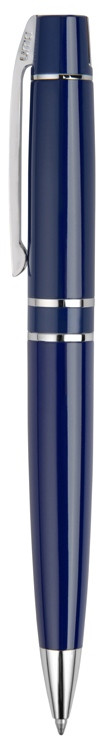 Металлическая шариковая ручка с поворотным механизмом и пружинным клипом. Фурнитура с глянцевой хромированной отделкой. Европейский объемный стержень в металлическом корпусе с наконечником из нержавеющей стали и вольфрамово-карбидным шариком (1.0 мм). Длина письма: примерно 10 000 м. Немецкие чернила соответствует стандарту ISO. Произведено в Германии.