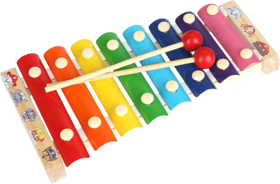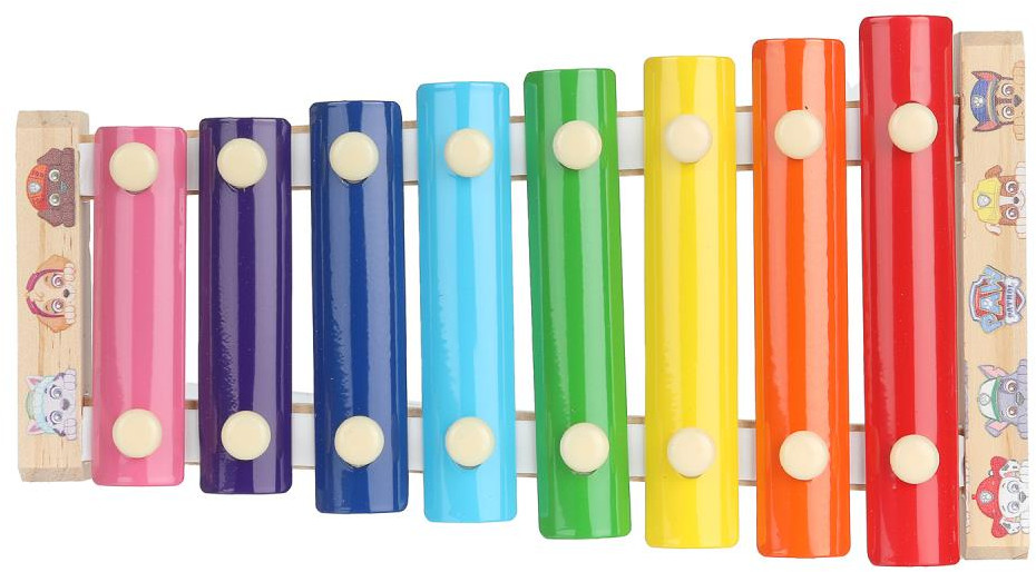 Развивающая игрушка из дерева — металлофон «Щенячий патруль» ТМ «Буратино» порадует юных музыкантов. Металлофон — один из любимых детских музыкальных инструментов, с которым так весело играть. Игрушка состоит из 8 пластинок разных цветов, слегка ударяя по которым палочкой, малыш сможет извлекать звуки разной тональности. С помощью металлофона можно научить ребёнка различать на слух звуки разной высоты, чувствовать ритм, а также играть на нём простые мелодии, сочетая разные звуки и складывая в ритмы и мелодии.
