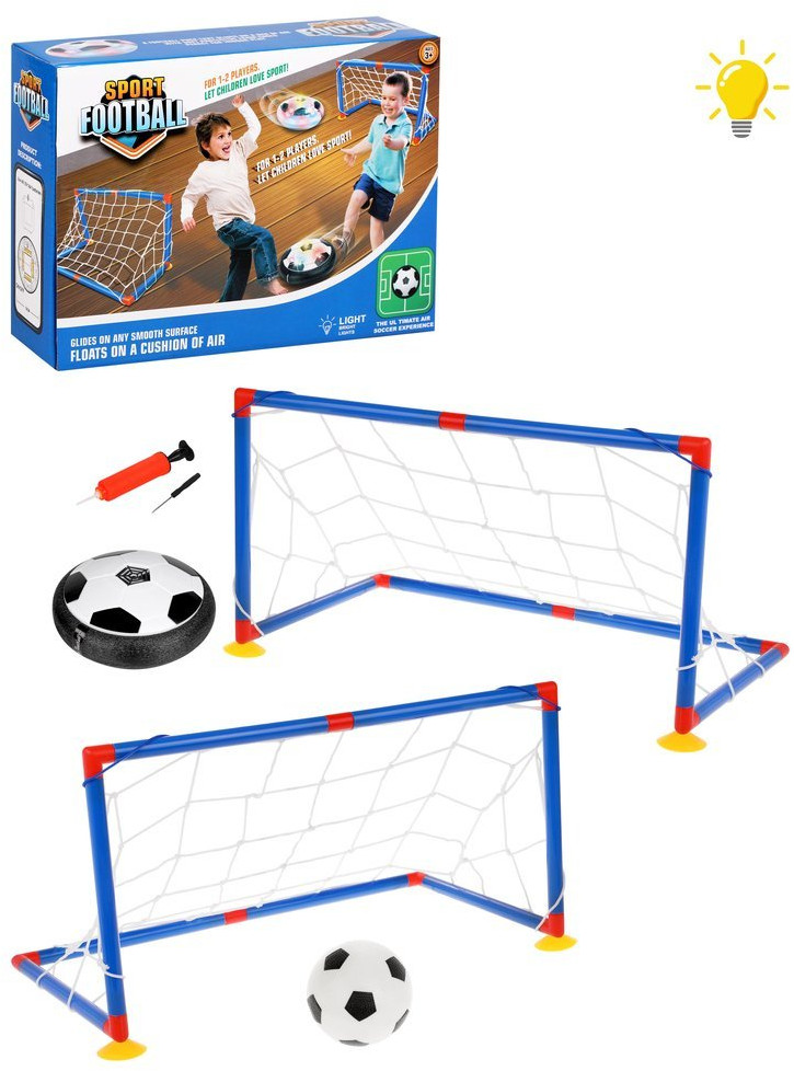 Игра в футбол, не выходя из дома! Веселая и динамичная игра «Аэрофутбол» рассчитана на 1-2 игроков. Этот мяч отличается от классического, но не уступает ему по увлекательности. Благодаря встроенному вентилятору создается воздушная подушка, которая позволяет мячу динамично двигаться над поверхностью пола. Мягкие бортики аэромяча позволяют играть детям дома без вреда мебели и другим предметам. Для игрушки потребуются 4 батарейки типа АА на 1,5 V (не входят в комплект).