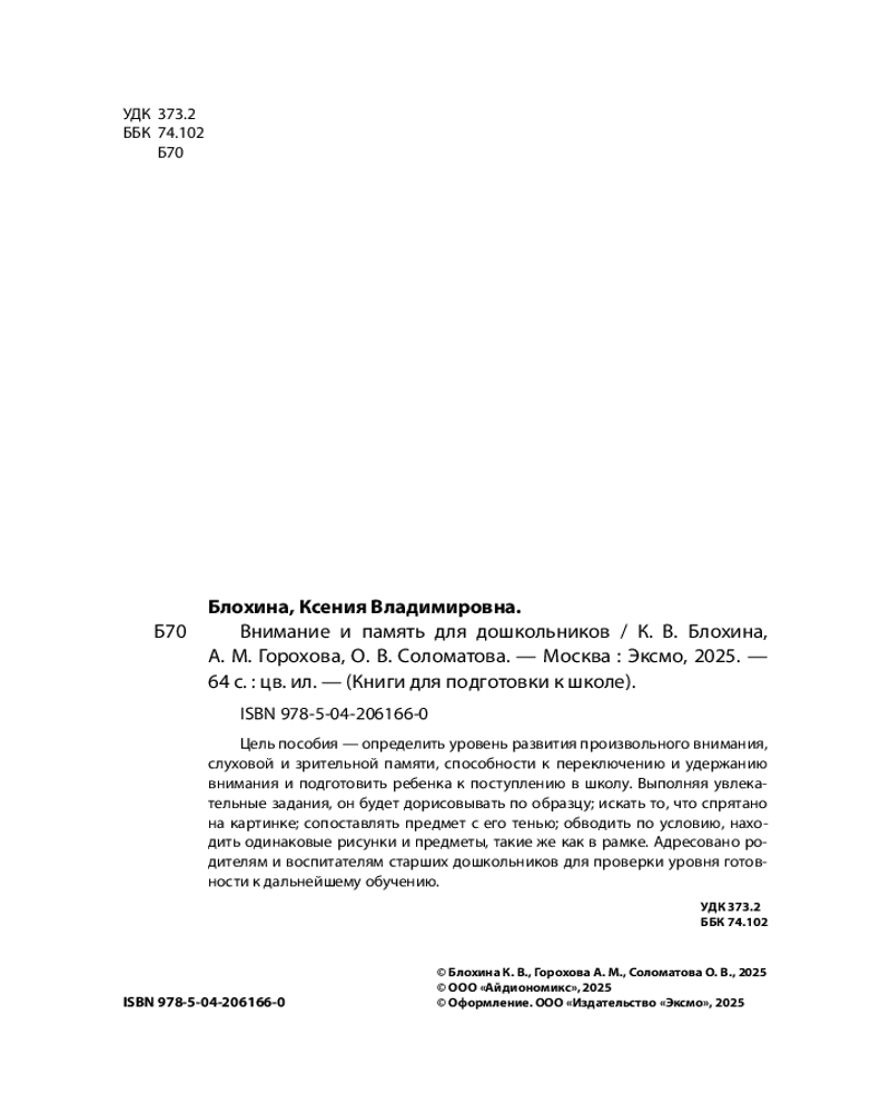 Внимание и память для дошкольниковАнна Михайловна Горохова, Ксения Владимировна Блохина, Ольга Валерьевна Соломатова