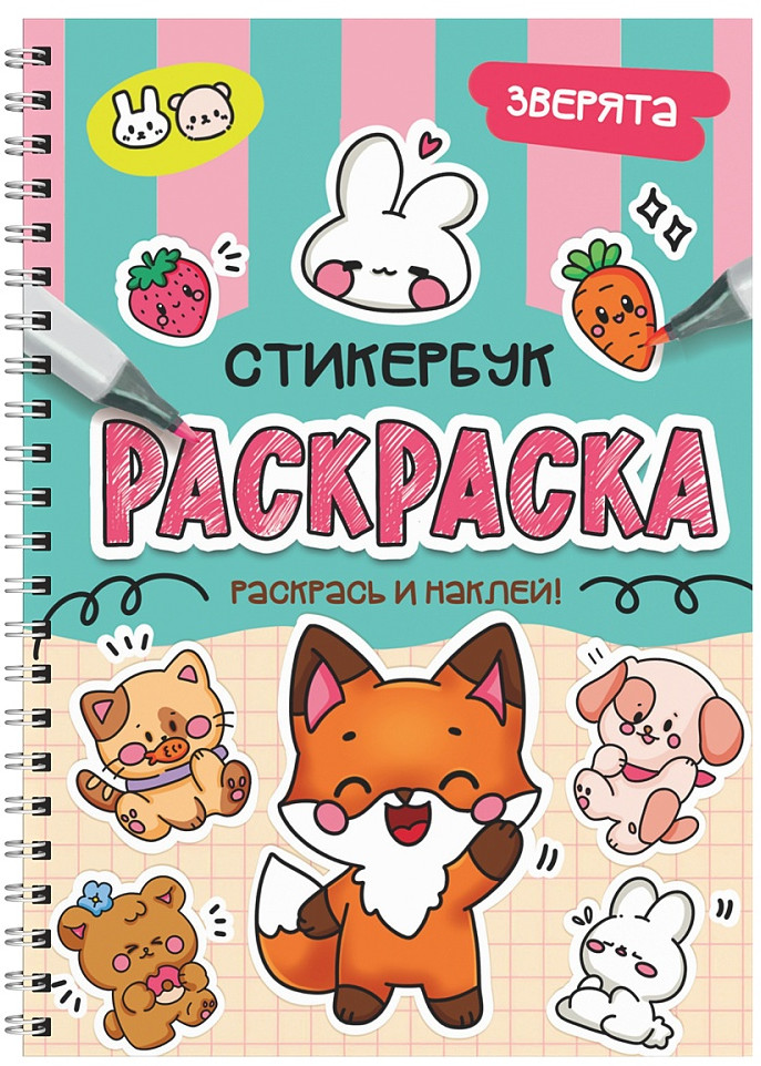 Раскраска-стикербук. Зверята