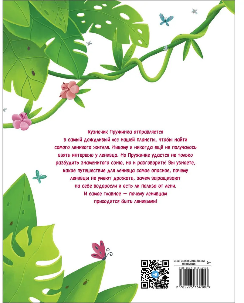 Серия: Non-fiction Всем привет! В эфире телеканал «Интервью вприпрыжку»! И с вами я — неповторимый, неутомимый, самый известный в мире животных кузнечик — репортёр Пружинка. Со мной, как всегда, волшебный рюкзачок, в котором я найду всё, что мне потребуется в нужную минуту. Сегодня я отправляюсь... ...А на мне весёлый дождевик. Потому что сегодня я нахожусь в самом дождливом лесу нашей планеты, чтобы встретиться с её самым ленивым жителем. |