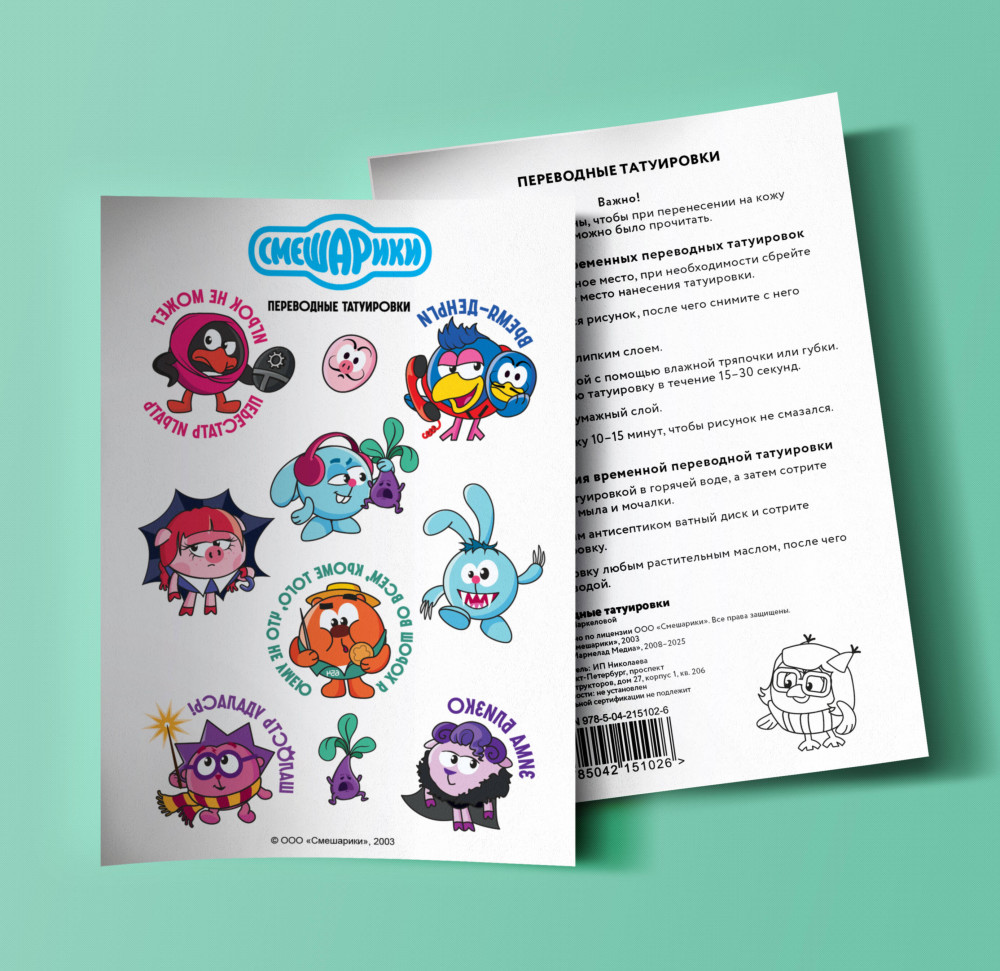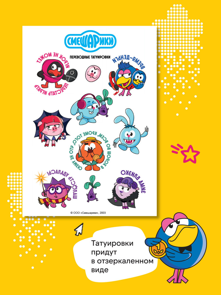 Серия: Смешарики. Легендарная вселенная Шалость удалась! Побалуй своего внутреннего ребенка! Специально для этого Смешарики примерили на себя новые образы. Задай себе стиль с помощью переводных татуировок. Временные переводные татуировки сделаны из качественных материалов и будут держаться на коже несколько дней. Набор с переводными татуировками не помнется при доставке — мы положили в упаковку плотную картонку. На обороте картонки написана инструкция для переведения татуировок на кожу. |