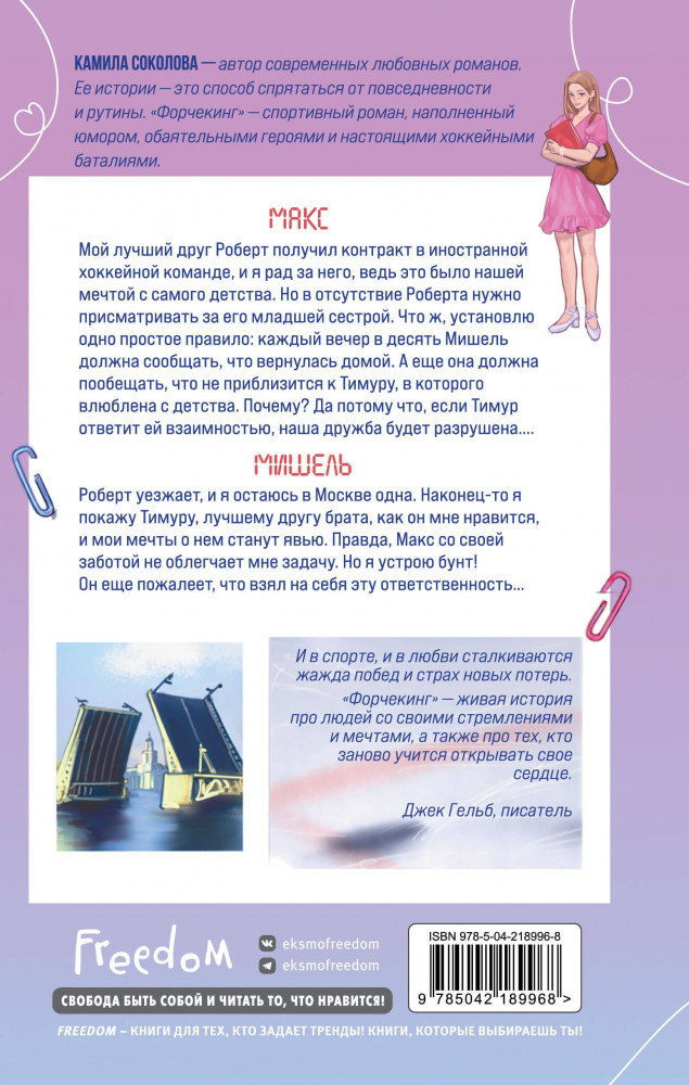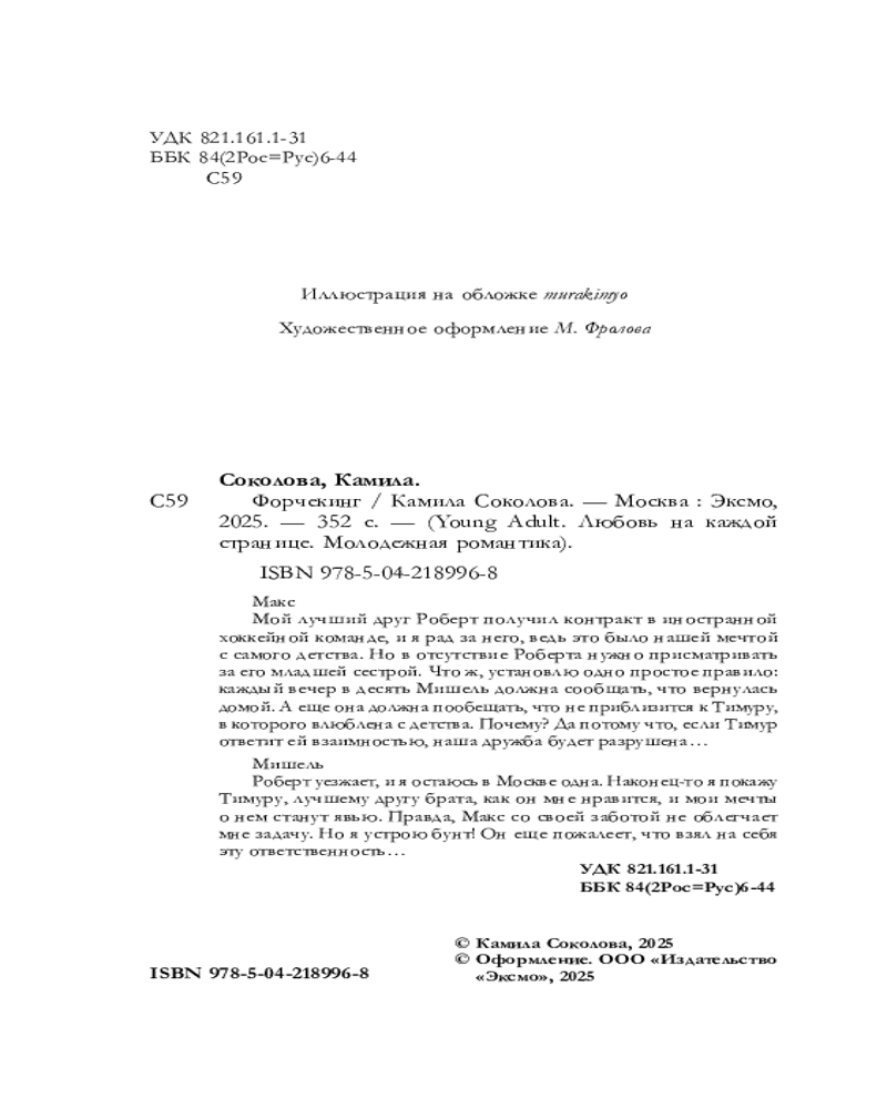 Серия: Young Adult. Любовь на каждой странице. Молодежная романтика Романтическая спортивная новинка! Тропы, которые вас ждут внутри: «от ненависти до любви», «вынужденная близость», «слоубёрн», «любовный треугольник» и «сопротивление чувствам»! Брат Мишель получает место в иностранной хоккейной команде, и теперь девушка предоставлена сама себе. Она в восторге, ведь наконец может открыть свои чувства лучшему другу брата. Однако все планы портит Макс, который начинает приглядывать за Мишель. Он против ее влюбленности, потому что и сам все чаще думает о ней, и устанавливает ряд правил. Но правила созданы для того, чтобы их нарушать... |