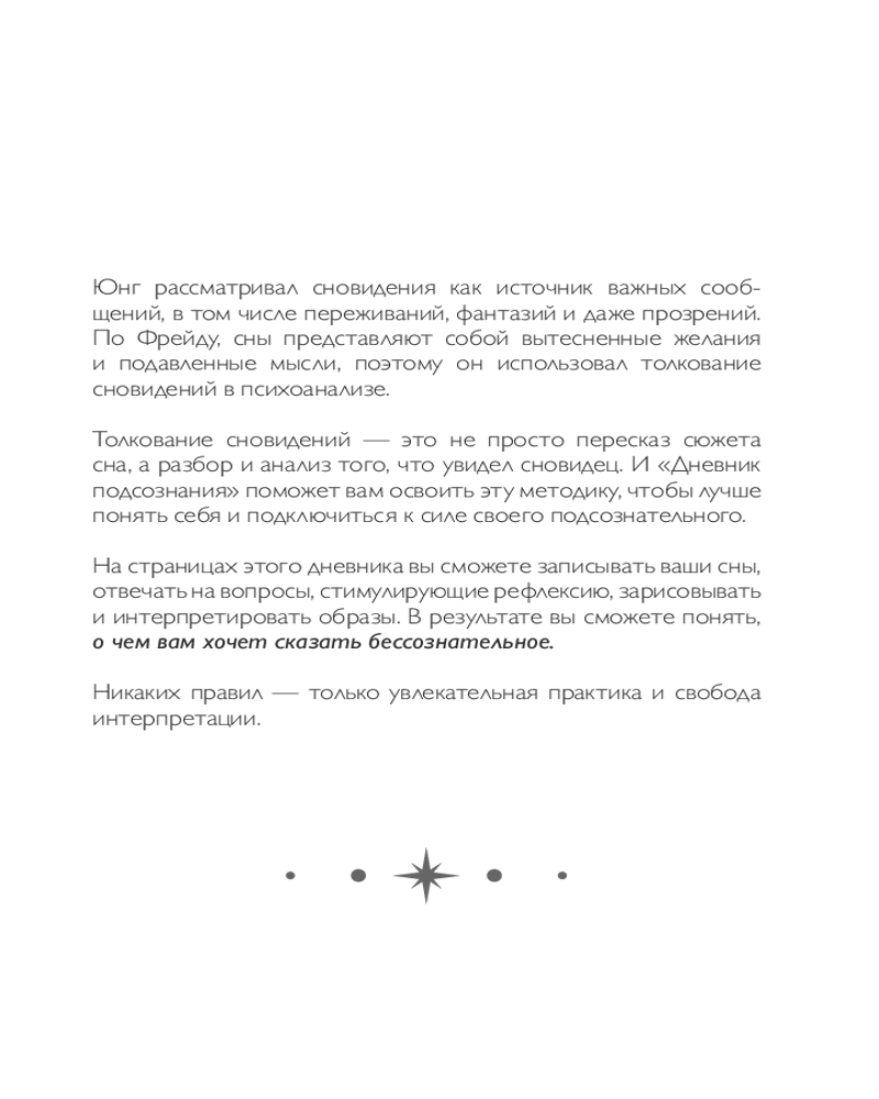 Серия: Блокноты позитивных изменений Дневник подсознания — это ваш личный инструмент понимания себя через толкование сновидений. Записывайте свои сны, выполняйте задания, зарисовывайте или собирайте в коллажи пришедшие в ночи образы, чтобы подключиться к силе своего подсознания и запустить цепочку позитивных перемен в жизни. |