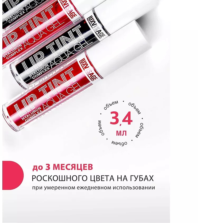LuxVisage Тинт для губ «Lip Tint Hyaluron Complex Aqua Gel», оттенок 02 Sexy Red