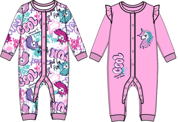 Комбинезон детский для девочки. Комбинезон с длинным рукавом из натурального хлопкового двойного трикотажа. 2 шт. в комплекте. 100% хлопок. Застежка на кнопки.
