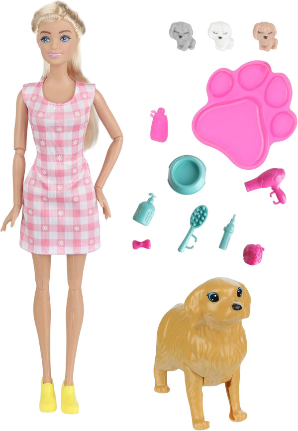 Модельная кукла «Барби» станет прекрасным подарком для вашей принцессы. Модница Барби одета в стильное розовое платье в клеточку. Одежду и аксессуары легко снять и надеть. С такой модной куклой девочке будет интересно и весело играть: благодаря тому, что руки и ноги куклы подвижны, им можно придать любое положение. У Барби длинные красивые волосы, которые хозяйка куклы сможет заплетать в разные причёски. Наличие питомцев и дополнительных аксессуаров в наборе поможет разнообразить игровые сюжеты. |