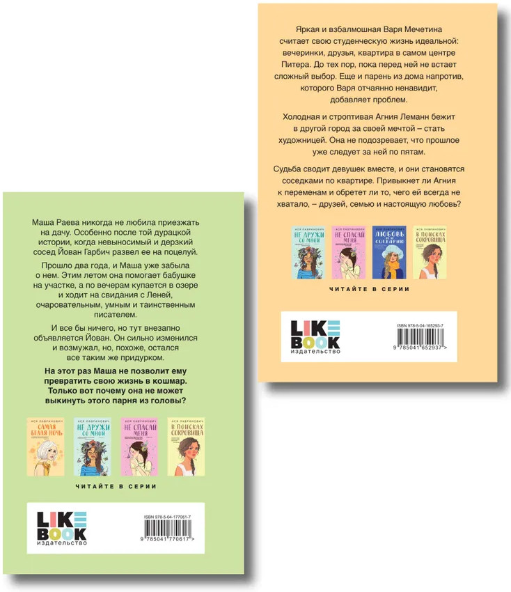 Маша Раева никогда не любила приезжать на дачу. Особенно после той дурацкой истории, когда невыносимый и дерзкий сосед Йован Гарбич развел ее на поцелуй. Прошло два года, и Маша уже забыла о нем. Этим летом она помогает бабушке на участке, а по вечерам купается в озере и ходит на свидания с Леней, очаровательным, умным и таинственным писателем. И все бы ничего, но тут внезапно объявляется Йован. Он сильно изменился и возмужал, но, похоже, остался все таким же придурком. На этот раз Маша не позволит ему превратить свою жизнь в кошмар. Только вот почему она не может выкинуть этого парня из головы? |
