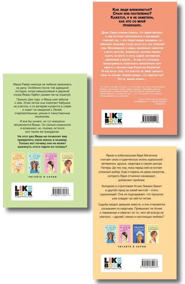 Маша Раева никогда не любила приезжать на дачу. Особенно после той дурацкой истории, когда невыносимый и дерзкий сосед Йован Гарбич развел ее на поцелуй. Прошло два года, и Маша уже забыла о нем. Этим летом она помогает бабушке на участке, а по вечерам купается в озере и ходит на свидания с Леней, очаровательным, умным и таинственным писателем. И все бы ничего, но тут внезапно объявляется Йован. Он сильно изменился и возмужал, но, похоже, остался все таким же придурком. На этот раз Маша не позволит ему превратить свою жизнь в кошмар. Только вот почему она не может выкинуть этого парня из головы? |