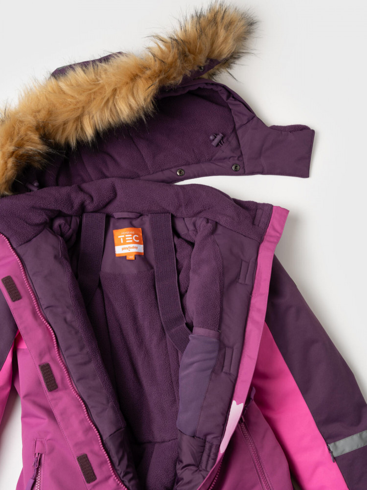 Зимний комбинезон для девочек PlayToday с полиуретановым покрытием — это надежная защита от холода, ветра и влаги в любое время зимы. Современный текстильный материал с PU-покрытием обладает водоотталкивающими свойствами и не пропускает снег, позволяя ребенку активно играть и чувствовать себя комфортно даже в непогоду. Продуманный крой обеспечивает свободу движений, а удобные застёжки облегчают процесс одевания. Мягкая подкладка сохраняет тепло, создавая оптимальный микроклимат, а прочные износостойкие материалы гарантируют долговечность изделия. Яркий дизайн с модными деталями делает комбинезон не только функциональным, но и стильным элементом зимнего гардероба маленькой модницы.