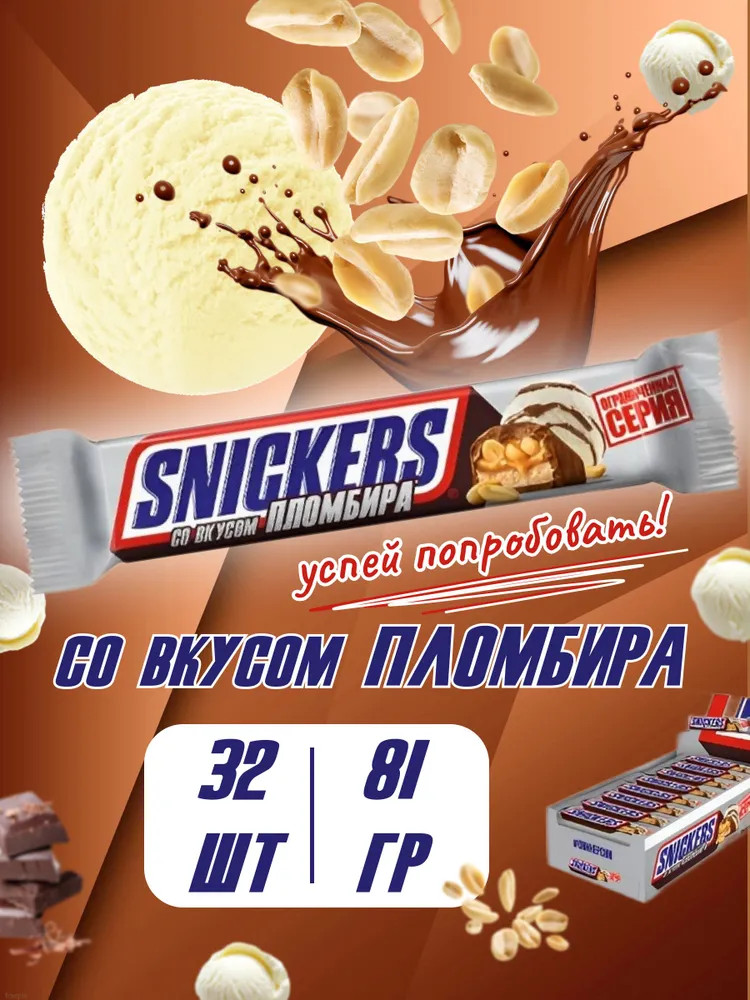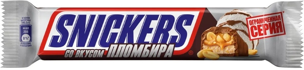Snickers Батончик шоколадный с обжаренным арахисом и карамелью «Пломбир»