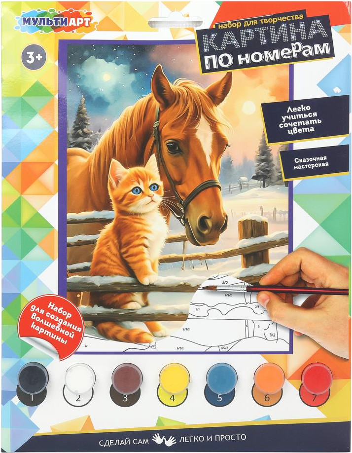 Multi Art Картина по номерам «Котик и лошадь»новинка -35%
