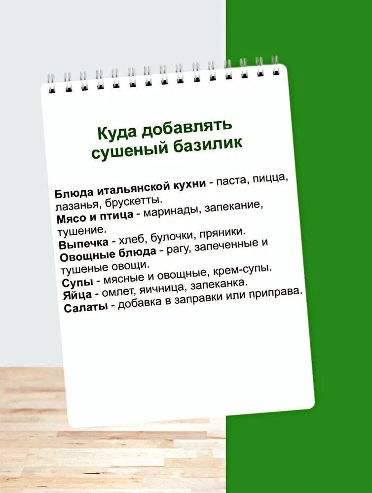 • долгое хранение: сушеный базилик сохраняет свои свойства намного дольше, чем свежий, позволяя вам наслаждаться им в течение длительного времени.