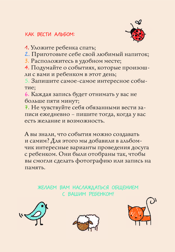 Пока ты спал. Самые интересные истории, которые случились с тобой в детствеВ данный момент этот товар отсутствует в продаже. Возможно, у нас найдется аналогичный или похожий товар здесь. Серия: Подарочные издания. Ребенок Дорогие родители, записывайте в этот альбом то, что говорит и делает ваш ребенок. Также вы встретите здесь увлекательные варианты досуга с ним, которые могут превратиться в запоминающуюся историю. После каждой игры мы оставили место, чтобы вы смогли записать ее итоги или приклеить фотографию с места событий. Даже занятым родителям будет удобно вести этот альбом: каждая запись отнимает не более пяти минут, а делать их не обязательно каждый день. Когда придет время, покажите свои заметки ребенку. Вы будете удивлены, насколько он будет рад – ведь вы подарите ему воспоминания о детстве! |