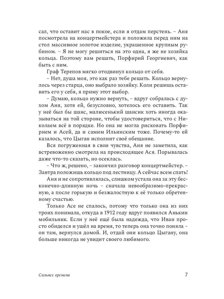 Серия: Золотой перстень с рубином Аня вернулась домой, но как быть, если прошлое, которое на мгновенье стало ее настоящим, возвращается раз за разом — во снах, вещах, старых книгах? Вернуться, чтобы понять, кто ты на самом деле? Вернуться, чтобы спасти любимого. Вернуться, потому что иначе никак... |