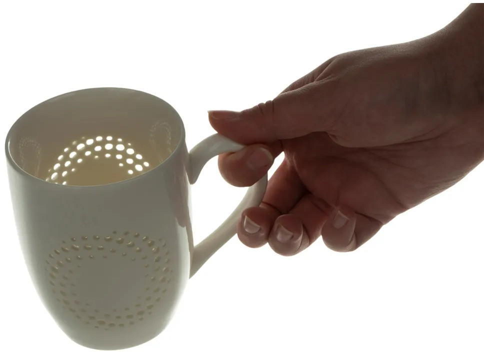 Серия: Lucent Эффектная особенность этой кружки — узор с эффектом «рисового зерна», в котором отверстия в фарфоре заполнены прозрачной глазурью. Это уникальная древнекитайская техника, которая дает и кружке, и напитку буквально светиться изнутри. Узор закручивается по спирали и в сочетании с игрой света в глазури выглядит особенно впечатляюще. Кружка изготовлена из костяного фарфора, который придает ей легкость и особенное изящество. |