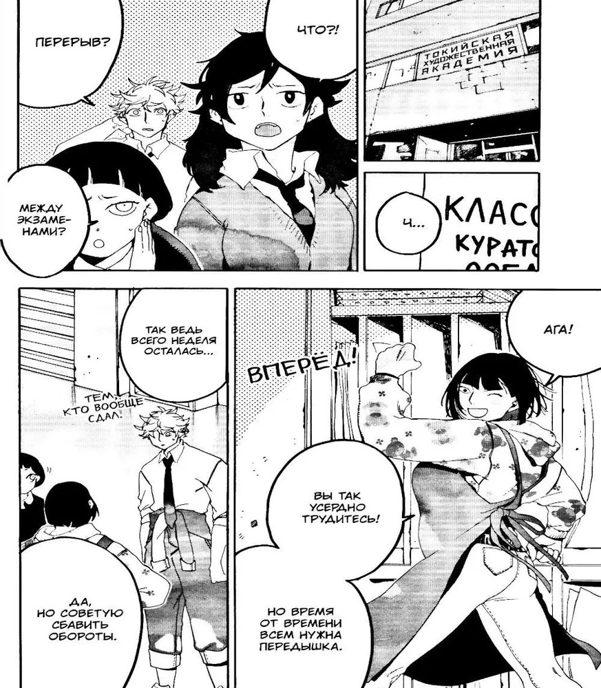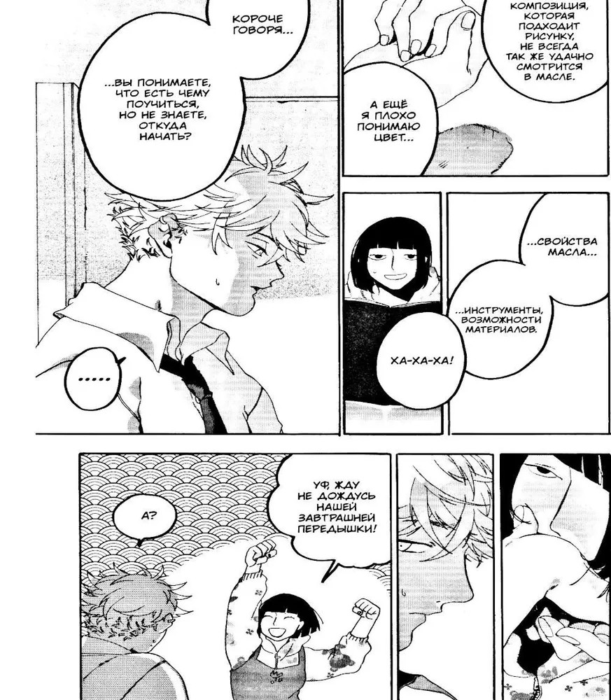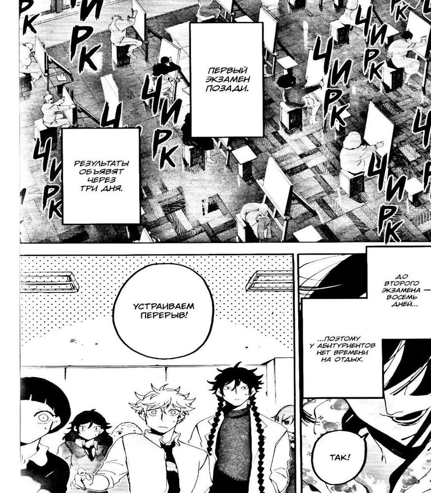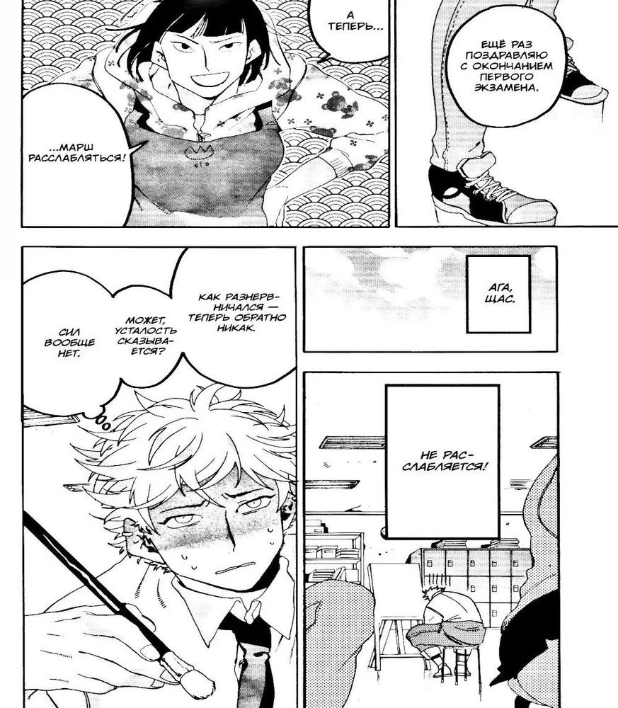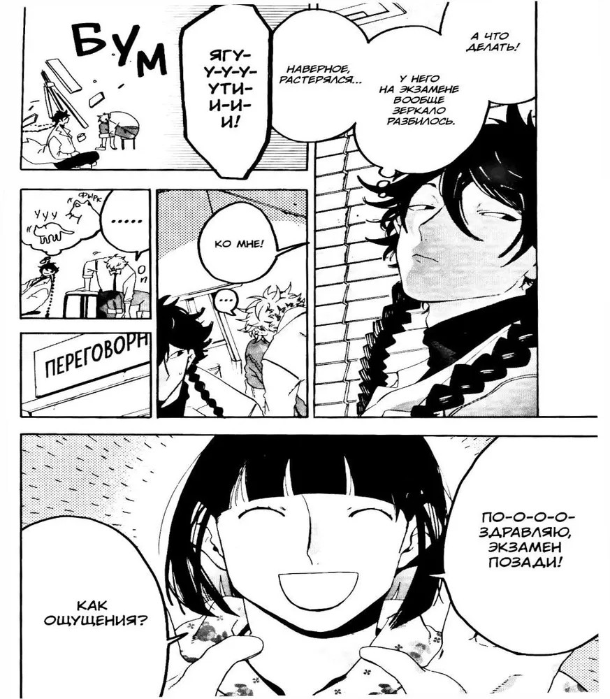 Не без происшествий, но первый этап экзамена позади. Вот только, узнав, что Рюдзи ушёл ещё до конца испытания, Ятора теперь не может обрести душевный покой и спокойно готовиться дальше. А ведь концентрация нужна ему перед трёхдневным экзаменом по живописи как никогда прежде! |