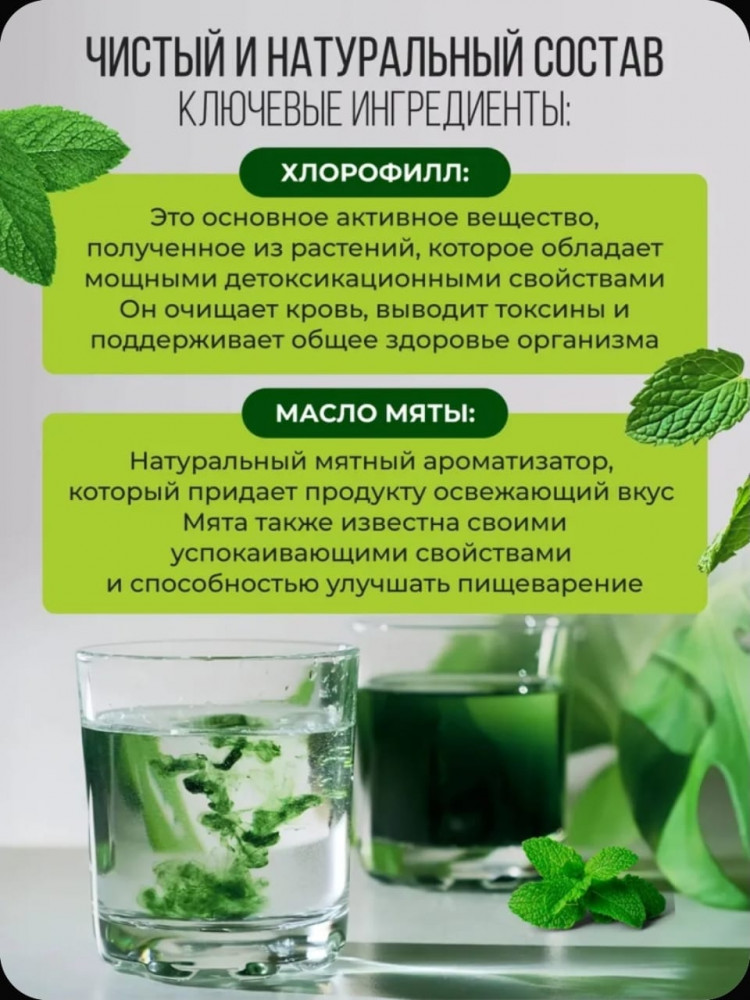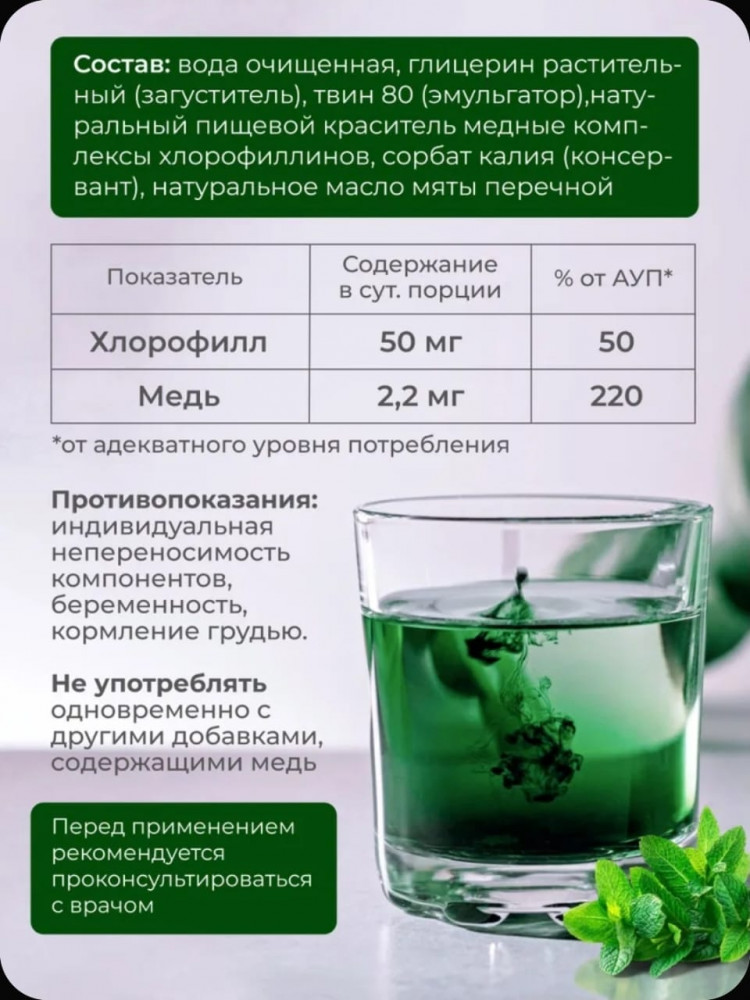БАД для поддержания иммунитета. Для тонуса и укрепления организма, Против ожирения, Для очищения организма, Для похудения, Для улучшения пищеварения. Не для детей. От 18 лет и старше. Показания: в качестве биологически активной добавки к пище — дополнительного источника хлорофилла и меди.