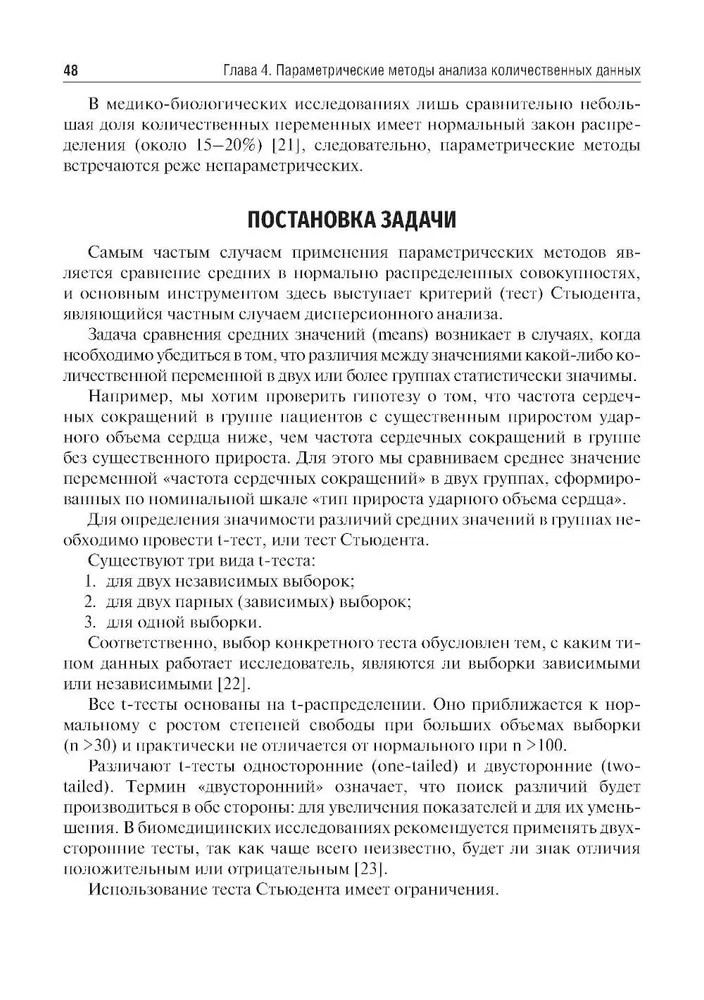 Учебное пособие содержит сведения о планировании научной работы с момента постановки исследовательского вопроса и формулировки гипотезы до проведения статистического анализа. Включает определение стратегии поиска, расчета размера выборки, проверку гипотез в исследовательских вопросах, основные методы статистического анализа, визуализации данных, вопросы для контроля полученных знаний, а также набор тестов для самоконтроля знаний студентов. Пособие направлено на формирование профессиональных компетенций при освоении учебного материала по разделам: «Дизайн научного исследования. Биомедицинская статистика», «Теория вероятностей и математическая статистика». Учебное пособие предназначено для студентов медицинских вузов и подготовлено в соответствии с требованиями действующего Федерального государственного образовательного стандарта высшего образования специалитета по специальностям: 31.05.01 «Лечебное дело», 31.05.02 «Педиатрия», 31.05.03. «Стоматология» и рабочих программ дисциплин «Дизайн научного исследования. Биомедицинская статистика», «Теория вероятностей и математическая статистика», утвержденных ЦКМС ФГБОУ ВО СамГМУ Минздрава России. |
