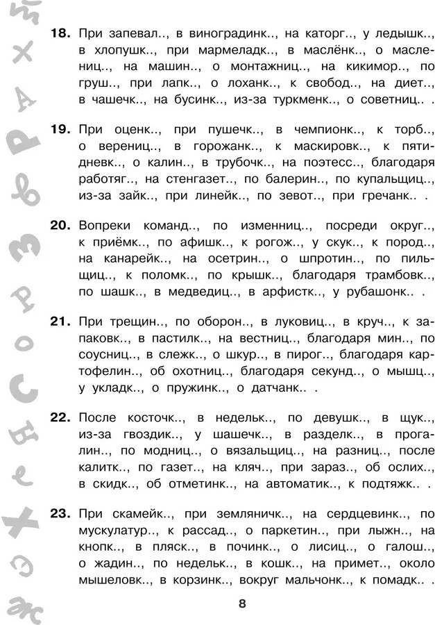 Серия: 3000 примеров для начальной школы Пособие содержит упражнения и задания по всем темам курса русского языка 4 класса, которые помогут выработать у школьников навыки грамотного письма. Материал пособия сформирован по принципу «от простого к сложному». Каждый раздел начинается с теоретических сведений. Это позволяет учащимся повторить правило и сразу же его закрепить, выполнив ряд практических заданий. Также упражнения можно писать под диктовку, выделяя орфограммы, а где нужно, подбирая проверочные слова. Путём регулярных упражнений школьники усвоят навыки грамотного письма и орфографические правила. Пособие можно использовать для коллективной и индивидуальной работы в классе, а также для самостоятельной работы дома. |
