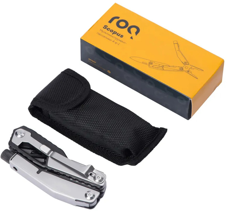 roq Мультитул-пассатижи с двумя битами 4 в 1 «Scopus»новинка В данный момент этот товар отсутствует в продаже. Возможно, у нас найдется аналогичный или похожий товар здесь. Складной нож Scopus от roq выполнен в ассиметричном необычном дизайне, в его составе — среднего размера нож, пассатижи, плоская и крестовая отвертки (биты), шестигранный ключ 5 мм. Брендированный чехол в комплекте. |