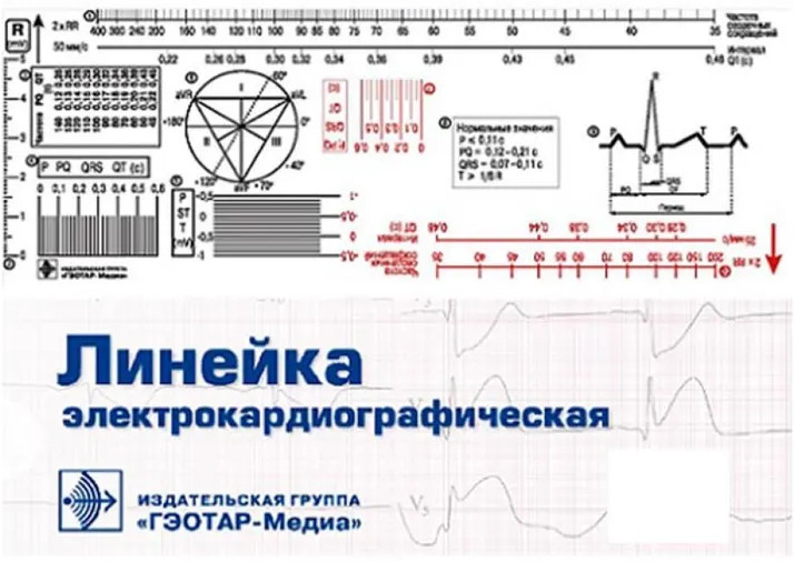 Линейка электрокардиографическая. ЭКГ-линейка для расшифровки электрокардиограммы, снятой со скоростью 50 или 25 мм/с